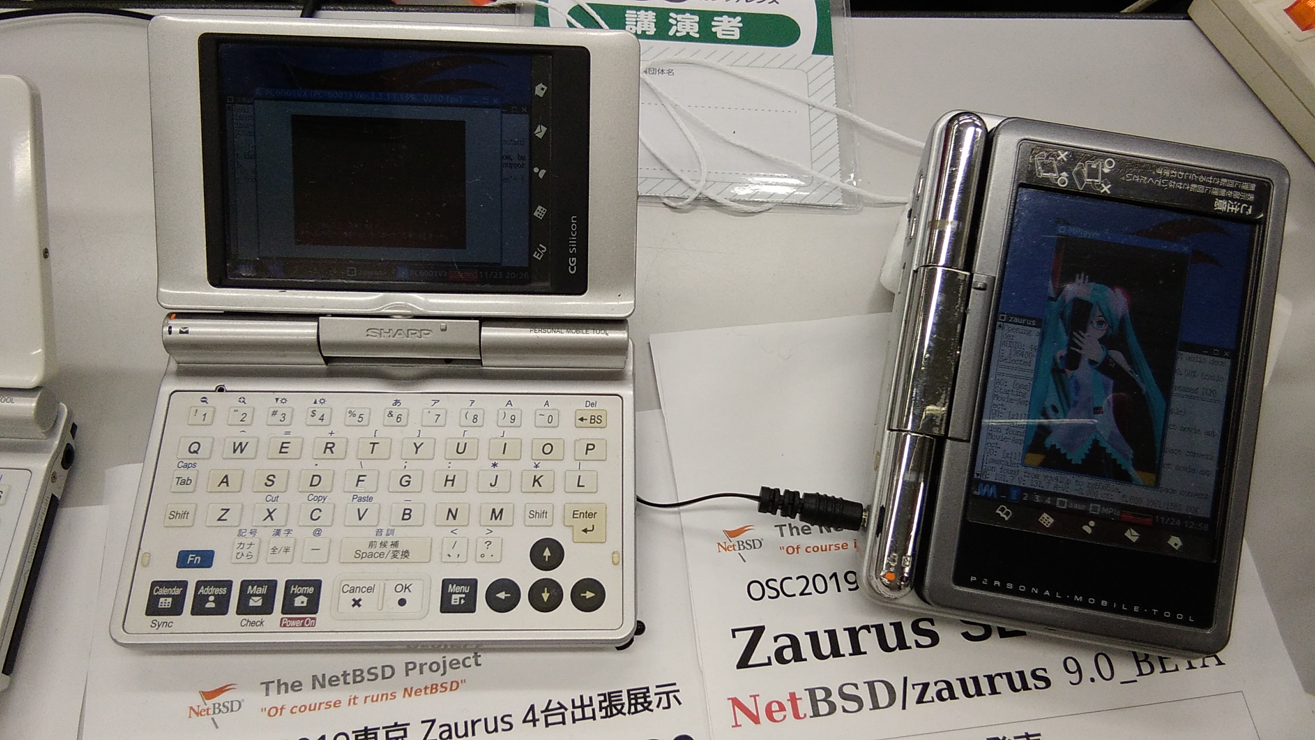 Various Sharp Zaurus handheld computers running NetBSD with JWM, from tsutsuii.